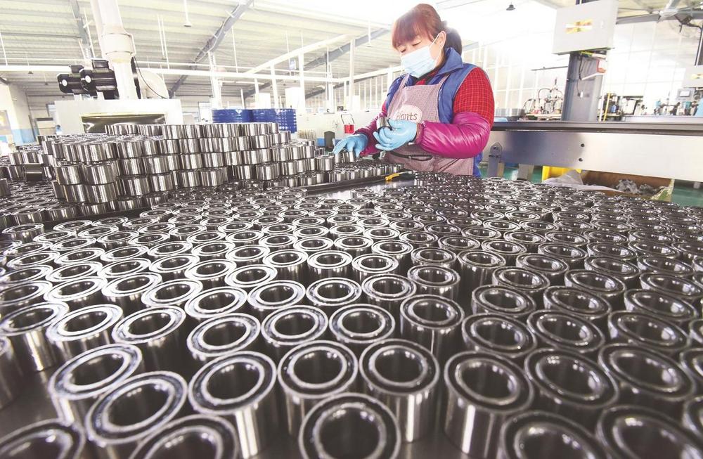 近年来,馆陶县不断探索发展轴承产业转型升级,在完善产业园区配套,构建科研、检测、生产、营销、展销产业体系的同时,积极引导当地轴承企业延长产业链条,积极拓展国外市场,拓宽轴承产品销路,产品出口欧洲、非洲、东南亚等多个国家和地区,带动4万余人实现家门口就业。图为在馆陶县轴承创意产业园区内,一家轴承企业工人在检查轴承成品质量。