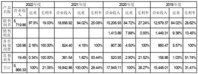 从数据看,中科华世2019至2022年期间综合毛利率的变动主要为销售图书业务毛利率下降及低毛利的纸张销售业务逐步停止导致。中科华世2021年销售图书业务毛利率为25.08%,相比2020年下降2.16个百分点,主要为2021年度纸张价格大幅上涨进而推高图书采购成本导致;2020年度销售图书业务毛利率为27.24%,相比2019年下降1.38个百分点,主要系中科华世于2020年上半年为应对国内经营环境变化对公司经营的冲击,以相对较低的价格清理了部分积压库存,以及受上游原材料涨价导致图书采购成本上升等因素综合影响导致。2020年销售纸张毛利率相比2019年下降12.52个百分点,主要系因中科华世于2020年上半年低价清理纸张销售业务历史遗留的陈旧纸张导致。纸张销售业务毛利率下降幅度较大,但由于收入占比较小,因此对中科华世总体盈利水平影响有限。2022年综合毛利率相比以前年度下降一是因公司版权业务占比下降,二是因公司总体采购规模下降导致采购成本上升导致。