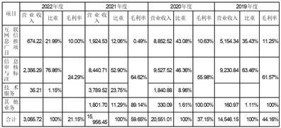 中科华世2019-2022年期间营业收入构成及其毛利率如下表所示: