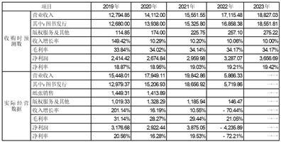 从表中数据看,公司收购时对2019-2020年间中科华世图书发行收入的预测数与实际数基本接近,2021年实际图书发行收入高于预测数约22%,主要系2020年以来,中科华世在上市公司的担保下,相继取得了5,000万元的银行流动资金贷款,为快速拓展业务提供了充足的资金支持。中科华世在保持原有线下民营渠道继续稳步增长的前提下,重点发展了面向全国新华书店系统等的主渠道类客户业务,较大幅度的提高了公司收入规模。同样地,净利率指标在2019-2020年间实际数与预测数也差异较小,净利率指标波动则主要受到收入结构及采购成本变化导致的毛利率波动等影响。