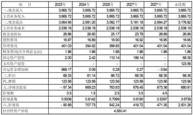 据以上预测逻辑,进行资产组自由现金流量预测,然后以计算出的折现率进行折现(具体参数计算见下述回复“(4)关键参数及其确定依据”),从而得出资产组经营性资产价值为4,550.41万元:
