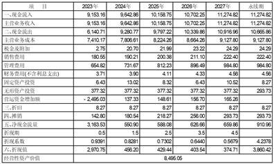 中科华世现金流入主要为企业经营收入所取得的现金。中科华世2020年、2021年、2022年营业收入分别为17,949.11万元、19,842.86万元、5,866.33万元,2020年、2021年、2022年收入增长率分别16.19%、10.55%、-70.44%。本次测算时,根据企业已签订合同及历史数据进行收入预测,考虑到2023年国内经济大环境向好,业务量较2022年应有所回升,因而预计2023收入较2022年将实现较高增长,2024年~2027年收入增长率参考行业平均增长率为5.35%。中科华世资产组2023年~2027年现金流入(主营业务收入)预测如下: