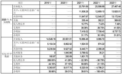 基于热热文化2020年互联网信息推广项目实际收入8,852.52万元,同比增长率71.75%,公司在当时确定2021年预测收入时采取将2020年增长率减半进行预测。实际经营中如上文分析,热热文化自2021年以来在经营策略上主动缩减了该类低毛利业务的预算投入,是该类业务实际收入低于预测数的主要原因。内容审核业务预测数高于实际经营主要系2021年初时点,热热文化与百度集团刚刚续签合作框架协议,未能预见到其从2021下半年开始的订单需求大幅下降直至合作停止。百度集团业务流失后,热热文化迅速调整了经营策略,在继续大力拓展信息审核类服务需求客户的同时,依托公司成熟的业务体系和技术积累,进一步拓宽公司业务边界,开发了一批技术服务类新客户,一定程度弥补了2021年审核业务下降带来的整体收入下滑。但受到经营环境变化、市场需求下降等多重因素影响,未能阻止2022年实际业务收入规模的进一步下降。