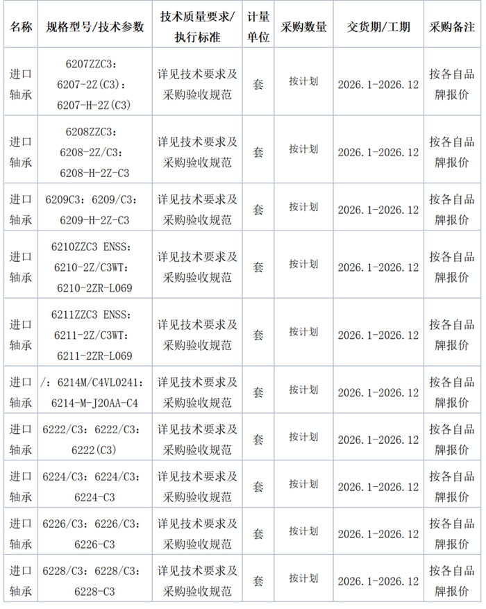 一、项目名称:进口轴承